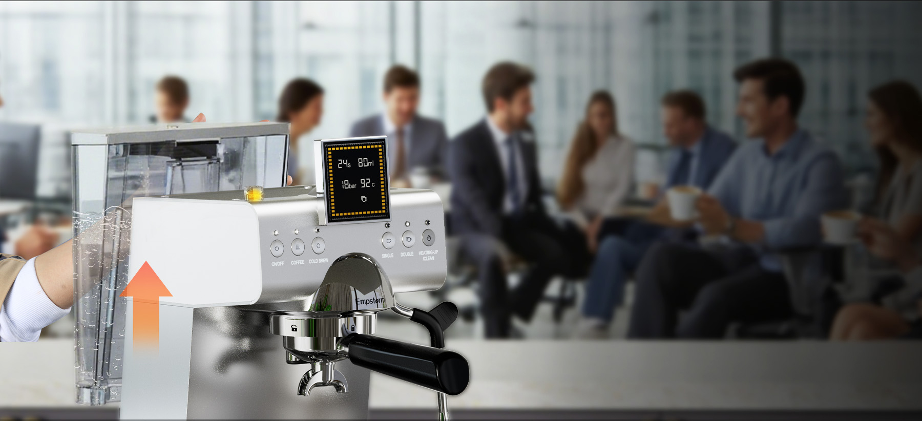 Engineered for efficiency, the 50 oz (1.5L) large-capacity tank significantly reduces the need for frequent refills, making it ideal for high-traffic homes or small offices. The user-friendly detachable design allows for effortless refilling and thorough cleaning under the tap, ensuring your coffee station remains pristine and highly productive throughout the day.
